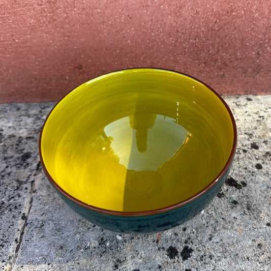 Grand bol céramique bicolore Bleu vert/Jaune colza H10,5cm